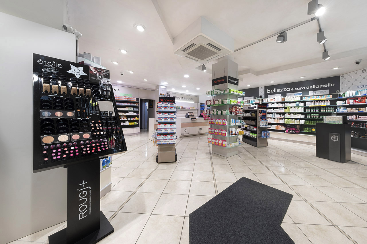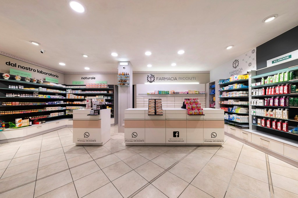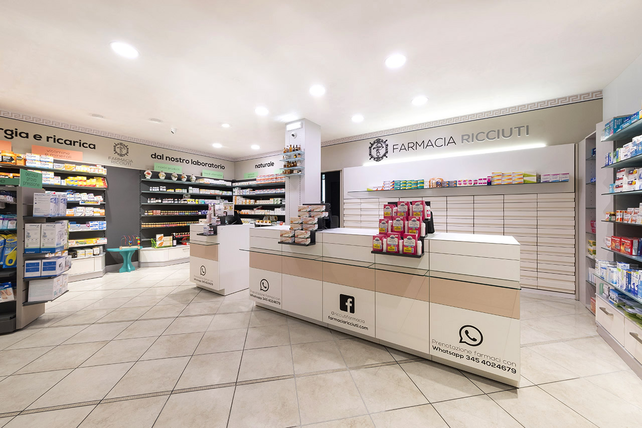 Ricciuti Progettazione della nuova farmacia Ricciuti a Monselice, PDDesign of the new pharmacy Ricciuti in Monselice, PDpartner: MobilM, ITworks120 mq Correlati